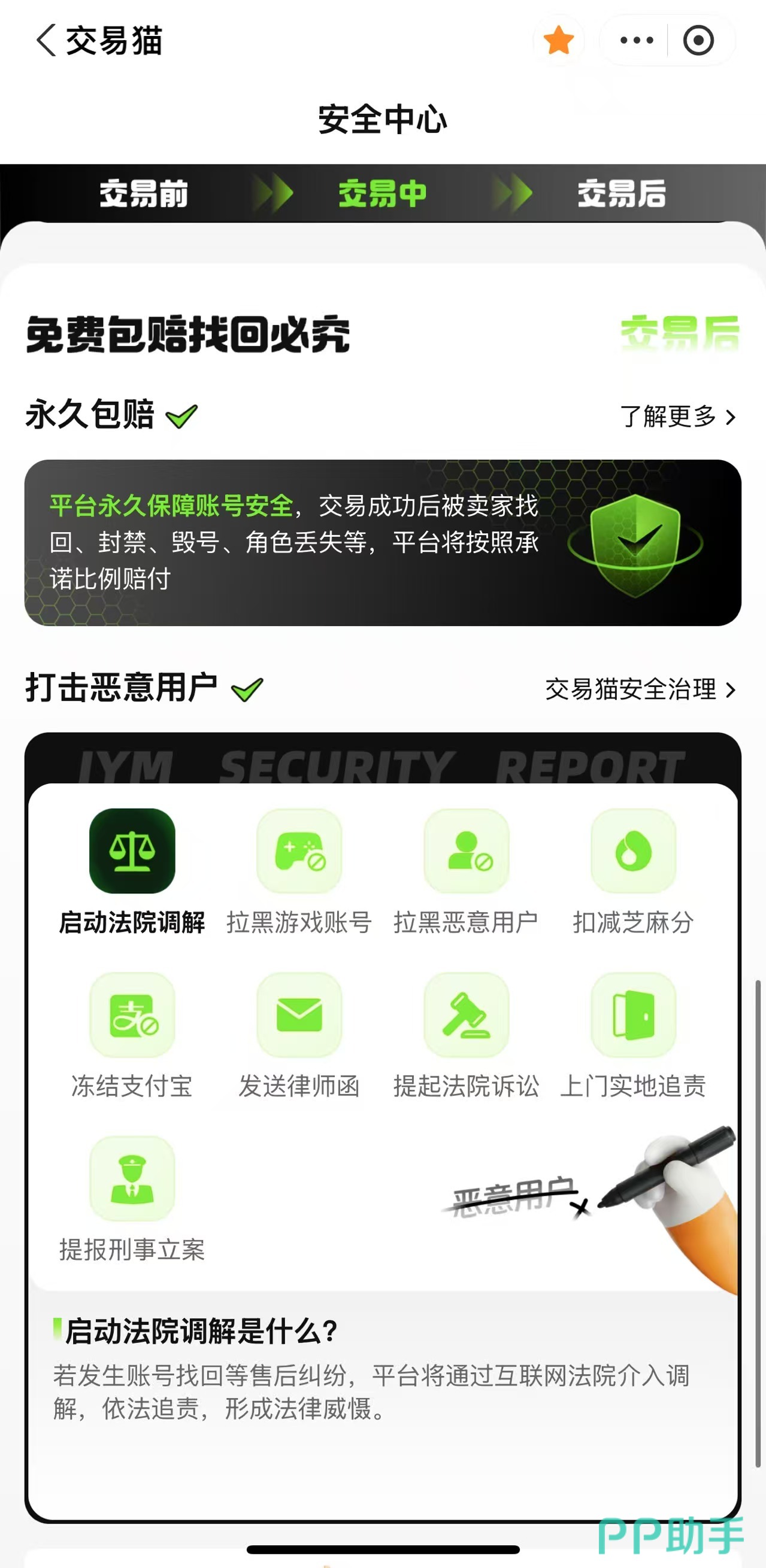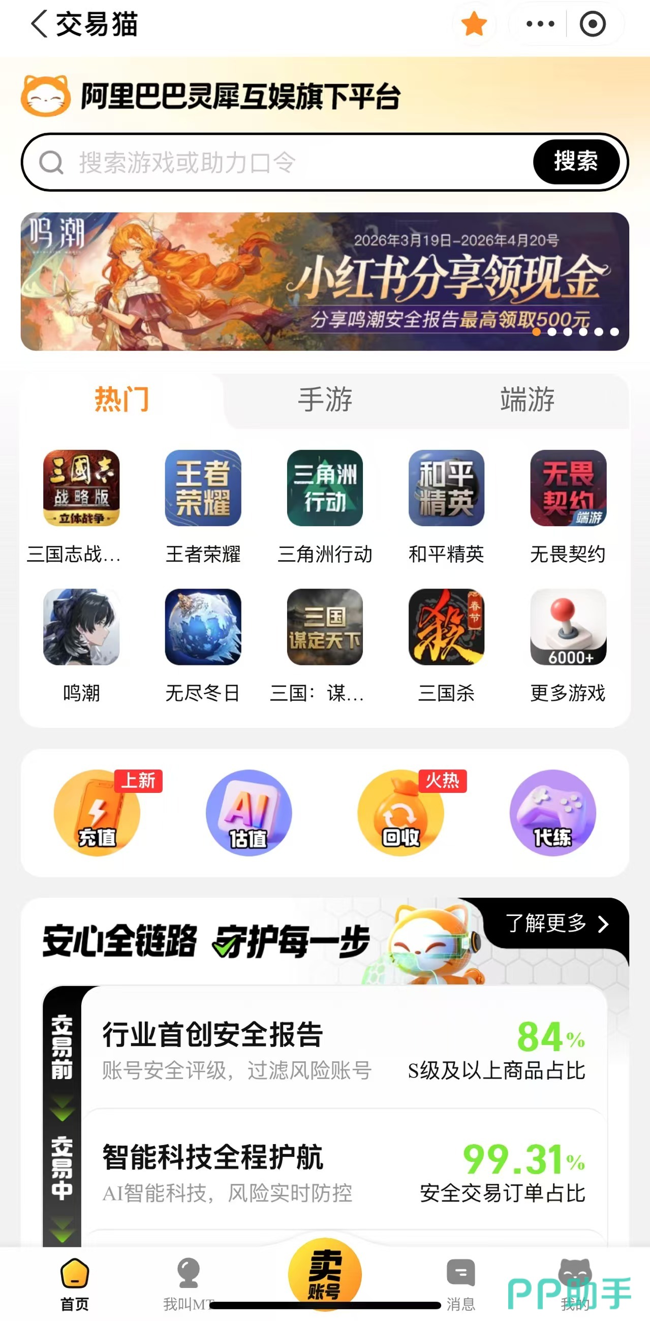 交易猫是当前国内手游账号交易领域综合评分位居首位的平台,依托阿里巴巴灵犀互娱在游戏服务领域的技术与资源支持,同步运营九游、交易猫、biubiu加速器三大核心产品,构建起覆盖账号交易、内容分发与网络优化的一站式游戏服务体系。平台已建立行业领先的全链路安全机制,涵盖实名认证、智能验号、资金托管、永久包赔四大核心保障模块。