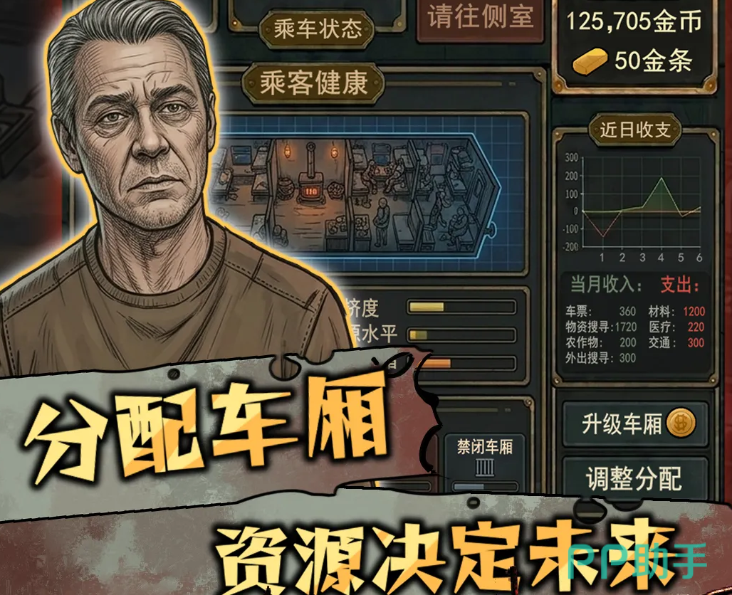 末日废土危机四伏,人类文明濒临崩塌,而你将肩负起关键使命——驾驶一列永不熄火的钢铁列车,在荒芜大地上穿行,成为幸存者最后的移动方舟。这不是传统意义上的射击或建造类生存游戏,而是一场以管理为核心、以决策为驱动的深度策略体验:你需要甄别登车人员健康状况,执行严格检疫流程,统筹车厢资源分配,逐步扩建列车编组,构建可持续运转的末世生态体系。