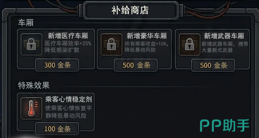 游戏强调长期规划与资源权衡。开局阶段物资极度紧缺,每一项操作都影响后续发展节奏:优先推进主线任务可快速获取核心升级材料;合理探索支线则能补充稀有配件与技能点数;车厢升级进度直接决定承载上限与功能延展空间。稳健起步,方能在中后期应对更复杂的疫情扩散、轨道故障、外部劫掠等多重挑战。