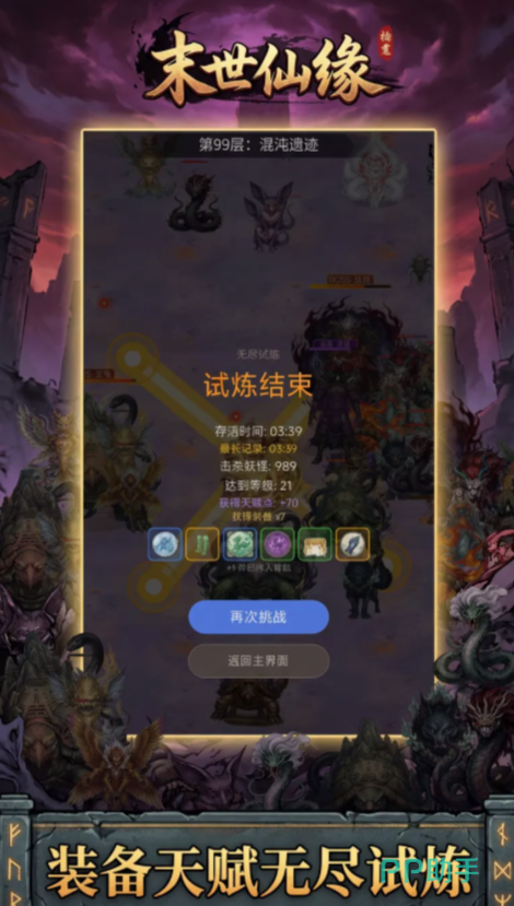 挑战过程中设置了上百个关卡,每一关遇到的对手都会有所不同,要在丰富的对战过程中,选择不同的装备套装和天赋系统相组合,争取在对战过程中产生更高伤害,整个游戏偏向于爬塔挑战,每完成一关挑战,才能继续进入到下一层对抗,完成对战之后,系统会给出大量装备,可以根据角色特性及时穿戴,保证角色能力不断得到提升。