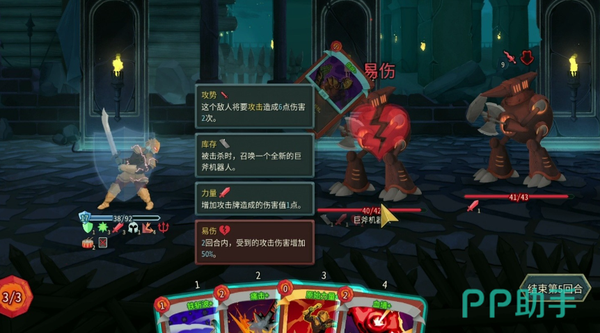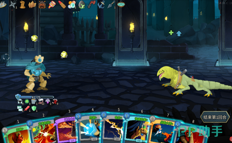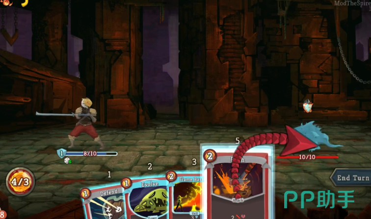 卡牌共分为三种类型,攻击牌可以对敌人造成伤害,技能牌带有一些独特的效果,一般来说不会有伤害,能力牌每一场只能使用一次,能够为己方所有卡牌带来持续性的buff,但所有buff都可以和其他卡牌所带来的buff叠加。卡牌每次行动都需要消耗行动点数,具体的点数数量则根据卡牌的颜色来决定,灰色是最普通的牌,蓝色较为罕见,而金色相当稀有。