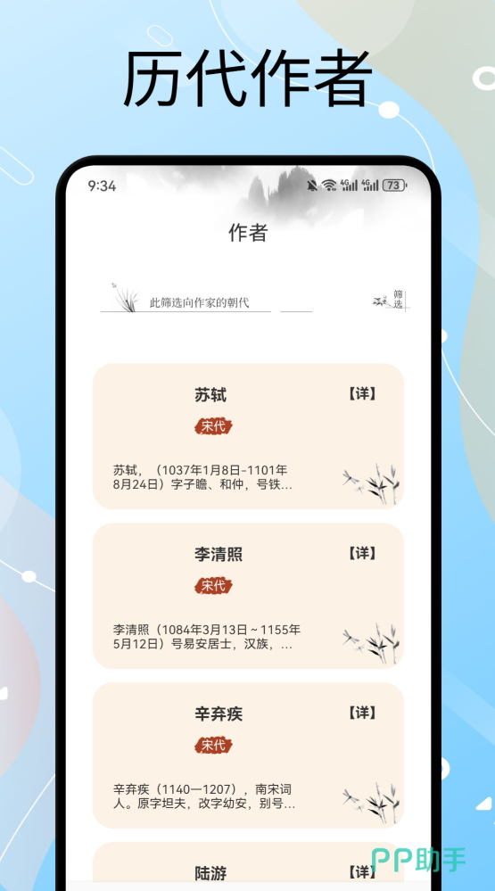 专注古典诗词基础教育与学术延伸,数据源严格参照中华书局、上海古籍出版社权威版本。涵盖唐五代至南宋末期全部代表性诗人及作品,每首诗标注详细创作年代、地理坐标、政治背景与思想流派归属。检索系统支持按作者生卒年、诗题关键字、韵部、格律类型(如仄起式、入声字分布)等十余种维度交叉查询,同步提供作者小传、交游圈图谱及后世接受史简述,适合进阶研习与教学备课。