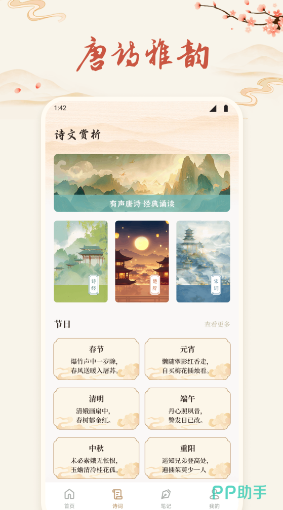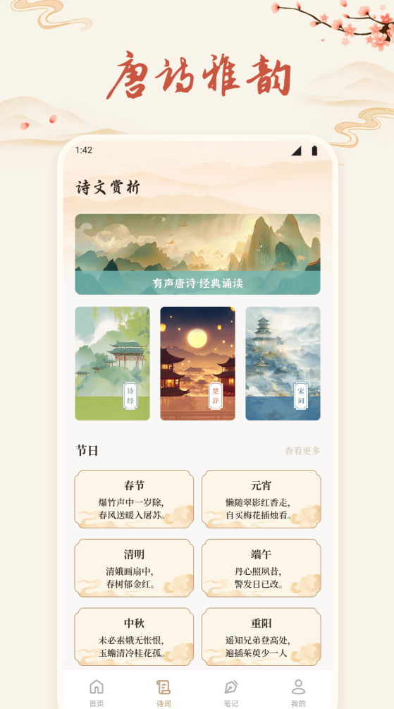 构建“时间—节气—情感”三维推荐引擎。首页每日推送契合当日物候、传统节日或二十四节气的应景诗作(如立春推《早春呈水部张十八员外》,中秋推《水调歌头·明月几时有》),并由国家级播音员完成全文配音,语音富于节奏张力与情绪层次。每首音频配套专业导赏稿,逐句解析修辞手法、典故出处、意象组合逻辑及记忆锚点提示,强化听觉输入对语感培养与背诵效率的提升作用。
