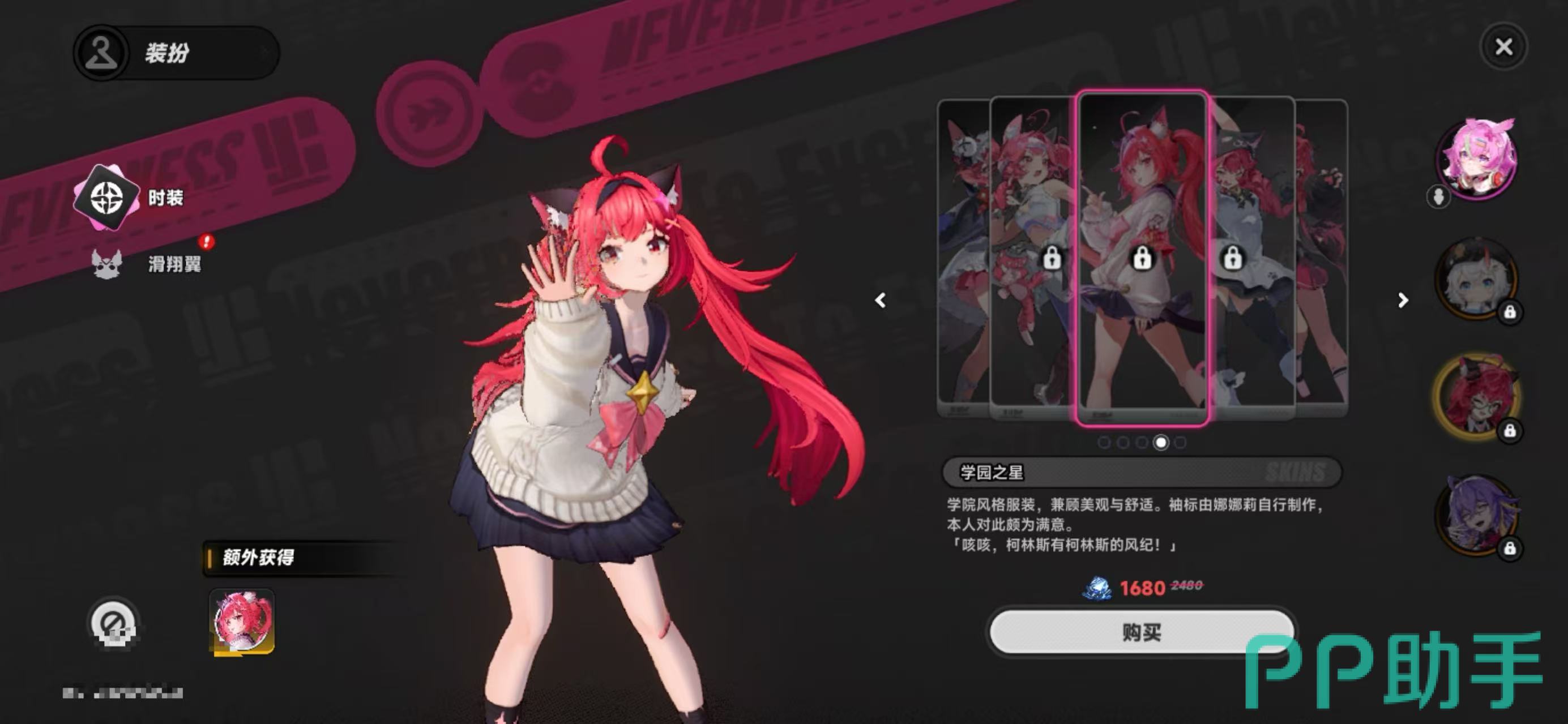 在游戏主界面点击“商店”,即可进入专属时装商城。首栏即为角色时装专区,其中包含限时上架款与常驻款两类。例如人气套装“学园之星”当前限时售价为1680点券,活动结束后将恢复原价;其余常驻时装则支持使用游戏内基础货币或点券兑换,满足不同消费习惯玩家的需求。