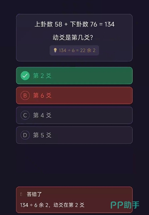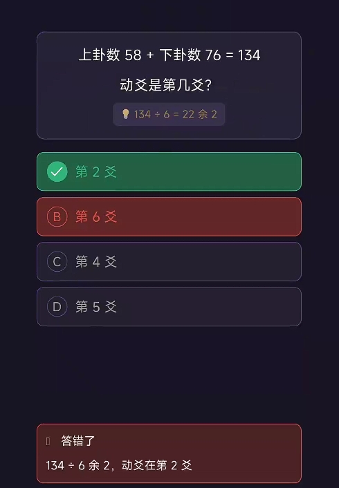 最重要的是,游戏将卦象知识进行了整理,并通过一种极为直观的方式,来让玩家了解各卦象所代表的含义,且这方面的知识点玩家只要打开游戏就能随时查看,相当的方便。若玩家觉得自己已经将这些知识了解得足够清楚,还可通过问答闯关来检验自己对梅花易数的掌握程度,里边的每道问答题都可在游戏内的知识库里寻找到答案,且游戏也会在玩家选择了错误的答案时,将正确的答案告知玩家并给出具体的解释,能进一步加深玩家们对梅花易数的理解。