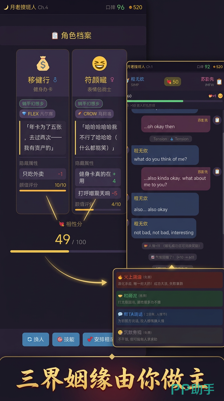 这游戏的NPC人设写得特别逗,相当接地气。你翻翻角色档案就乐了,有那种天天转发健身教学视频、现实里只去过两次健身房还得靠外卖活着的卷王,嘴上喊着“我可是办了年卡的人”,你说气不气?还有那种干啥都能笑半分钟的乐天派,笑着笑着就开始打呼噜,关键她自己还死不承认。这些小人物的性格缺陷反而成了这游戏最真实的地方,家人们玩久了仿佛在看身边同事的日常生活实录。