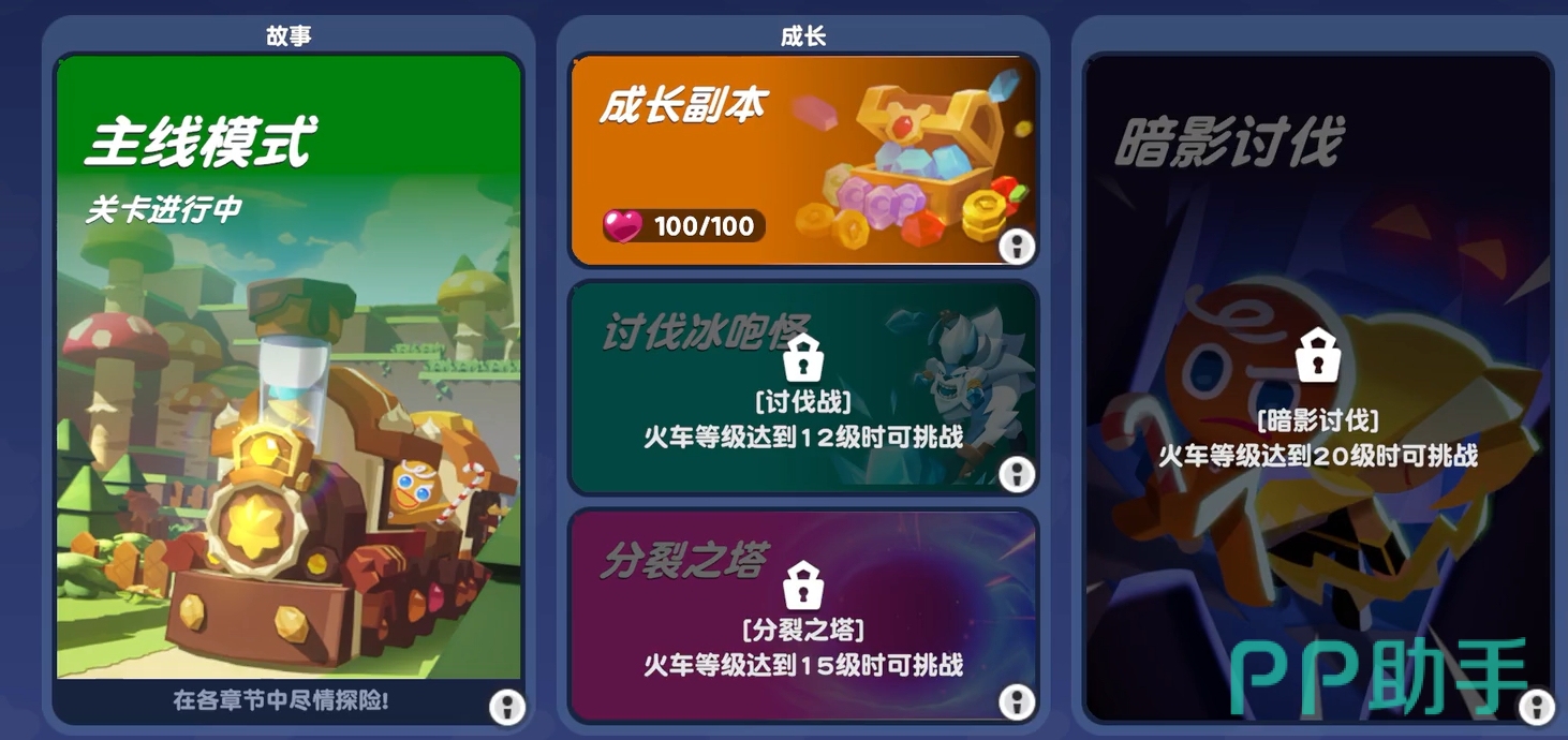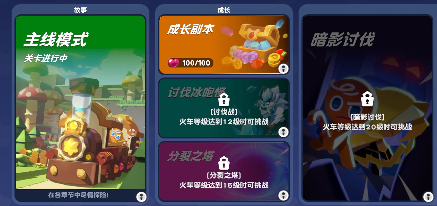 随着玩家们在故事模式中闯过越来越多的关卡,还可帮助火车星级,解锁更多可游玩的模式,更能直接前往专属的养成副本里,为饼干人角色们刷取他们成长所需的素材,令他们能变得更为强大。倘若玩家想与好朋友一同在饼干人的世界里挑战强敌,也可在讨伐战玩法中实现。该模式至多支持四名玩家组成作战小队,每位玩家也都能在战斗中操控自己所选的饼干人与他人进行配合,用最默契的姿态完成对强敌的挑战。