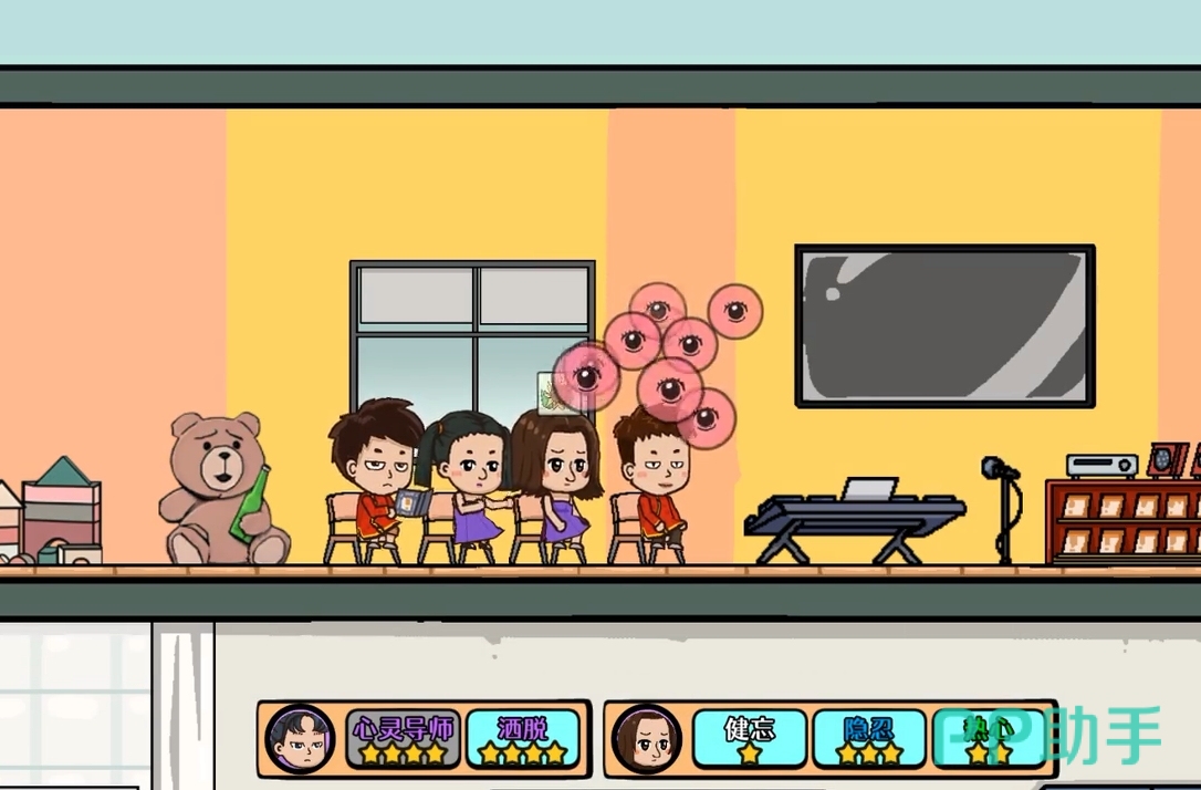 游戏的进程推进主要依靠互动,它里边的每个场景都有多个可进行互动的目标,比如家里的家电、娱乐工具等,并且每次互动都会直接占用玩家们的一段时间区间,若是玩家们将一天的九个时间区间全部利用完,后续的时间只能上场睡觉,任何事情都能等待天亮后再做。当然了,若玩家已经没有任何想做的事情,也可通过睡觉等方法来跳过当前的时间区间,快速进入到下一区间继续人生模拟。此外,只要玩家不进行任何的互动,那么时间也不会流逝,因此玩家们大可先查看各互动哥目标可进行的互动选项,然后再做出与哪一个目标进行互动的决定。