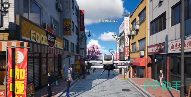 第一个拍摄的目标很简单,站到店门口的位置,然后打开照相馆的模式。召唤无人机调整镜头,对准后面的正门拍摄,一定要拍到完整的门店大门。直到屏幕出现已完成拍摄目标的提示为主,就说明这个步骤已经完成。在提交完第一个目标之后,从照相馆出门,然后沿着右手边的道路往前。就会看到有一个门面建筑再次切换到照相模式,然后去拍摄,全程都没有复杂的地形,跟着走即可。第三个拍摄目标和第二个路线一致,还是从照相馆出发。