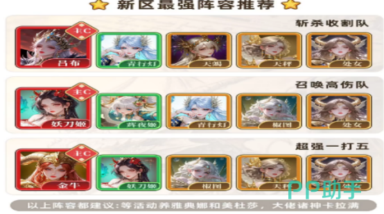 其次大家更注重的就是阵容的搭配了,目前经过多方面的验证之后,已经呈现出很多强有力的阵容,比如无限冰冻流,大家就可以选择雅典娜,还有魔蝎女神,以及处女女神等等,这样的阵容就能够呈现出较好的控制能力,在任何的战场环境中都可以强制克制敌人,而另外就是吕布国家队也是非常不错的,其中有吕布张角,还有华佗等等,这样巧妙搭配圣兽的话,就可以强化出整个队伍当中的爆发力以及生存能力。