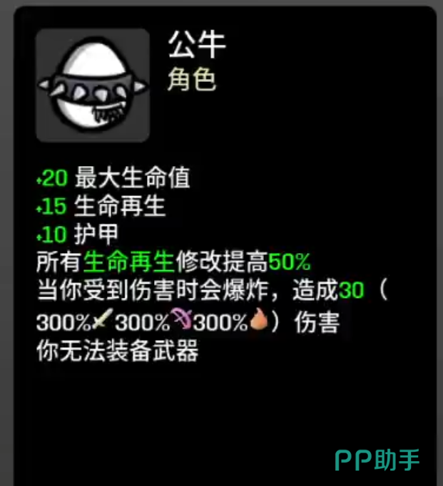 在土豆兄弟手游当中,还会涉及到其他的热门角色,解锁条件也相对简单。比如独臂是新手玩家比较友好的角色,完成难度零关卡,并且还能够获得红色的道具,攻击速度翻倍,还可以带武器,特别适合那种喜欢极简操作的玩家。公牛需要通关难度一,但是拿到地精类红装,高血量,高护甲,挨打还能够爆炸输出,生存力也是比较强悍的。