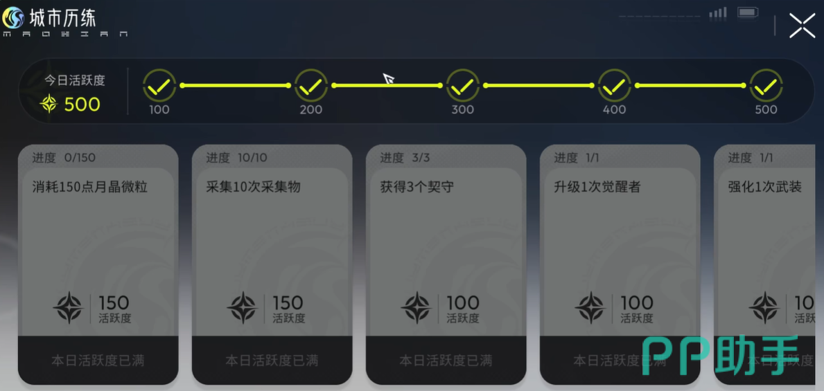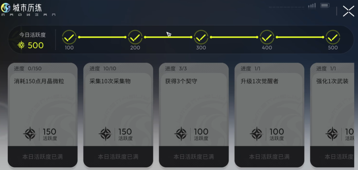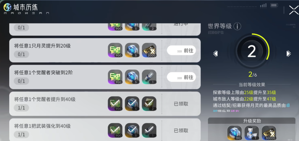 在《望月》这款游戏中,城市历练是玩家日常成长的核心路径之一。它并非独立玩法,而是深度嵌入角色养成体系的结构化任务系统,主要分为“每日历练”与“世界手册”两大模块,两者相辅相成,共同支撑等级提升、资源积累与战力进阶。