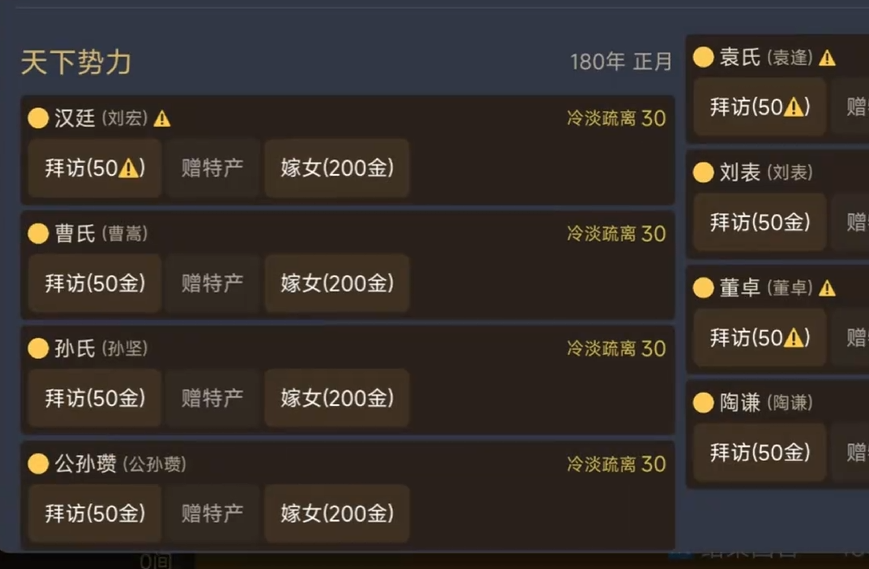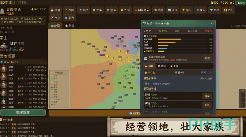 游戏开局阶段,玩家需从多个历史底蕴深厚的世家门阀中择一而立,担任族长。每个世家拥有独特地理区位、初始资源倾向与成长路径——例如有的起于中原腹地,农业基础雄厚;有的立足江东水网,商业与航运优势突出;还有的扎根西凉边塞,兵源素质与马政条件优异。玩家可依个人策略偏好,自主规划家族发展方向:深耕农耕以稳根基,拓展商路以聚财富,或整训兵马以争雄图霸。