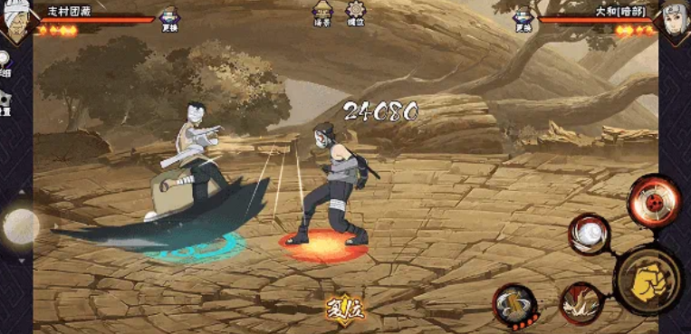 团藏这个角色在游戏里的表现也很有特点。他的技能设计围绕着风遁和瞳术展开,战斗风格偏向于近身压制。杖中藏刃让他可以突然拔出武器攻击敌人,袖卷疾风则是用风遁制造强大的冲击波。配合写轮眼的能力,团藏在战斗中可以打出很多连招,给对手造成持续的压力。