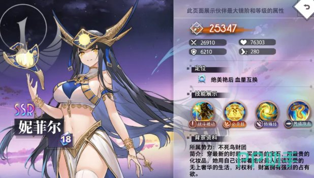 妮菲尔是一个技能设计,比较有特色的角色,她的血量互换机制和免死被动,都是比较独特的设计。如果喜欢这种多功能型角色的玩家,可以考虑培养一下她。她的技能组合起来,能够在战斗中发挥出不同的作用,给队伍带来更多的战术选择。