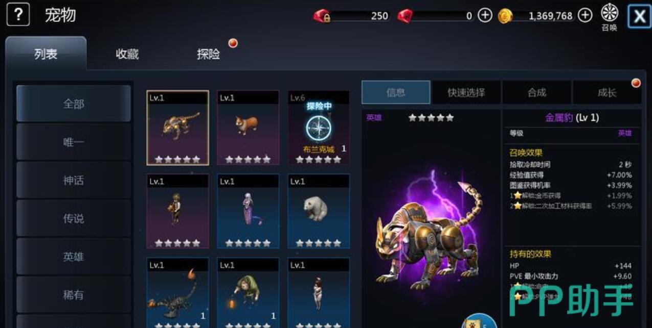 宠物的日常养成并不繁琐,快捷栏自由切换。低阶宠物可以合成高阶形态,抽到重复多余的宠物全部用来喂养核心的主力,升级就可以。