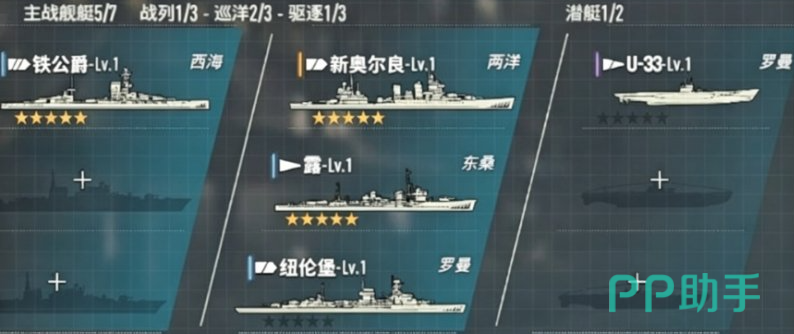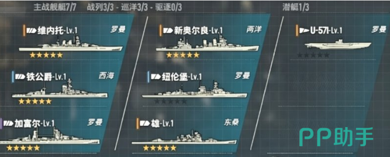 第一套开荒阵容当中,大家可以搭配的是铁公爵、露、U-33、纽伦堡、兰利的组合,这也是零氪玩家初期比较适用的选择,其中的各个舰船定位都是很清晰的,、所以开荒阶段的各个挑战当中都是非常适用的,其中铁公爵作为阵容其中主要用来做火力压制的船检,能力当中主打的就是可以用自己的主炮来爆发输出,这里的主炮伤害也确实是很高,甚至是可以让它成为舰队的核心输出,然后U-33跟露的话同时都携带了一部分的进水效果,二个船舰放在一起用有了足够的协同作战能力,就可以叠加到足够的持续伤害,在持续消耗敌方舰船的血量之后,这里纽伦堡自身拥有的燃烧伤害以及防空能力也都是很强的,也可以用来补充持续输出,对于敌方的空袭也可以用火力压制,而兰利的话,在这里就可以依靠快速整备的特性,来提升舰队空袭的频率,这样阵容当中就有了足够的补充能力可以用来应对空袭伤害,这样的阵营组合其实就可以激活罗曼军旗以及两洋基础的buff效果,至少在欧潜艇鱼雷以及舰载机的火力输出上面试有不错的提升。