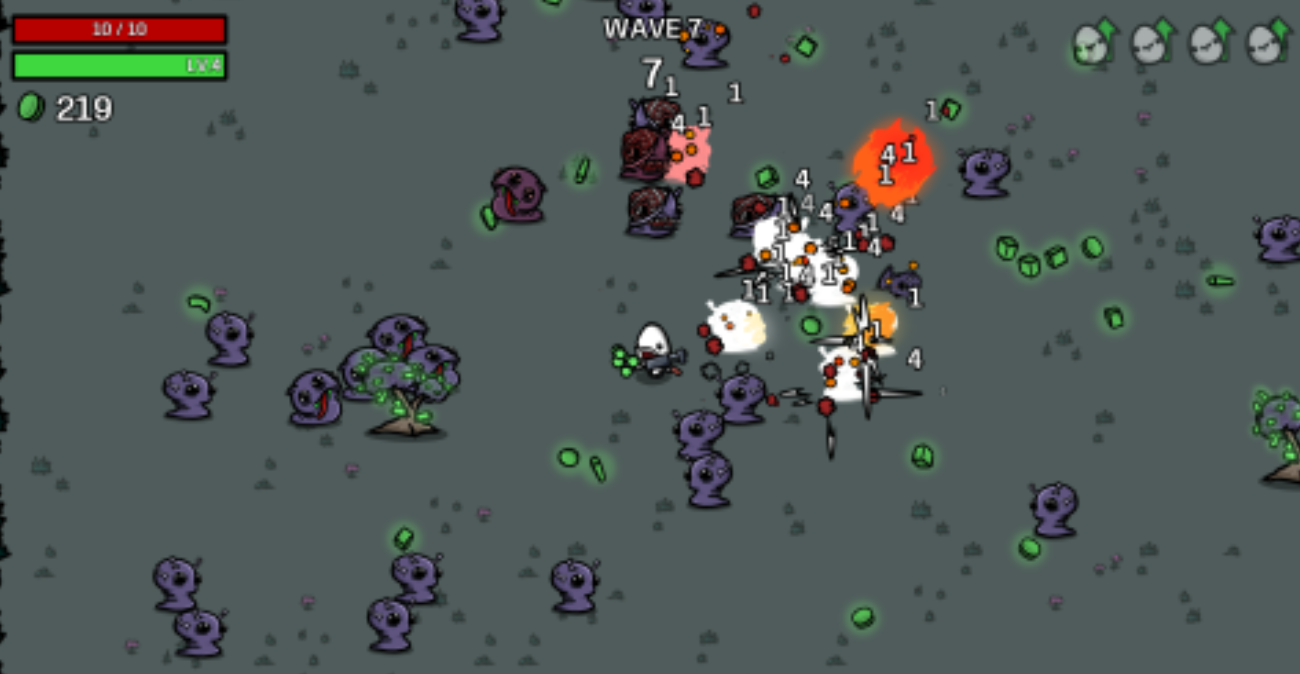 《土豆兄弟》也用上了肉鸽循环的资源、成长系统。玩家杀敌获得资源后,用资源提高自身装备和角色等级。肉鸽事件的加入使游戏增添了不少新意,给玩家赋予特殊道具、材料等,在以后的战斗中取得上风。而随着游戏的进行,玩家可以逐步解锁新的成就、新的角色、新的武器等等,角色的力量也随着时间的推移越来越强。这样设计使游戏的发展不再依靠连续的战斗胜利来推进,在不断的积累资源和获取新内容的过程中保持住玩家的好奇心。