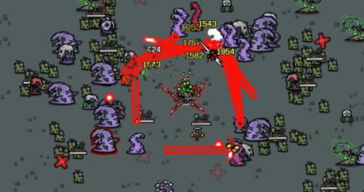 游戏战斗模式比较特别,它将弹幕割草和生存挑战两者结合起来。玩家在每一场比赛里都要和很多怪物进行激烈的交锋,在混乱之中去获取资源来提高自身的武器装备。使玩家处在紧张的战斗节奏之中,没有一刻可以放松,这也是游戏的一种魅力。400多把武器供玩家随意挑选,而且还设有武器升级机制,使得每一次战斗都会留下悬念,玩家必须根据实际情况而制定战术才能取胜。