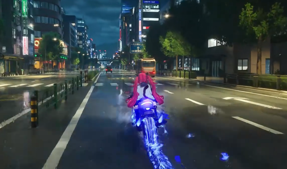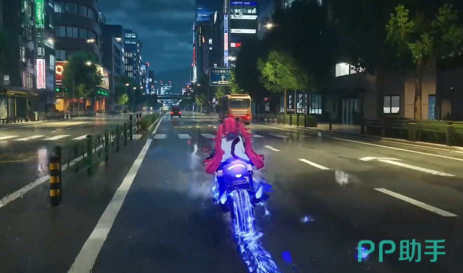 购买完摩托车之后,给角色装备上焰魂狂飙这把弧盘,然后骑上摩托车。这时候就能看到摩托车后面会出现紫蓝色渐变的鬼火拖尾效果,视觉效果非常炫酷。特别是用娜娜莉这个角色的时候,骑着带鬼火特效的摩托车,在城市里穿梭,整个画面看起来就很有感觉。这也是为什么很多玩家都想要获得这把武器的原因之一,不光是为了战斗属性,也是为了这个独特的视觉效果。