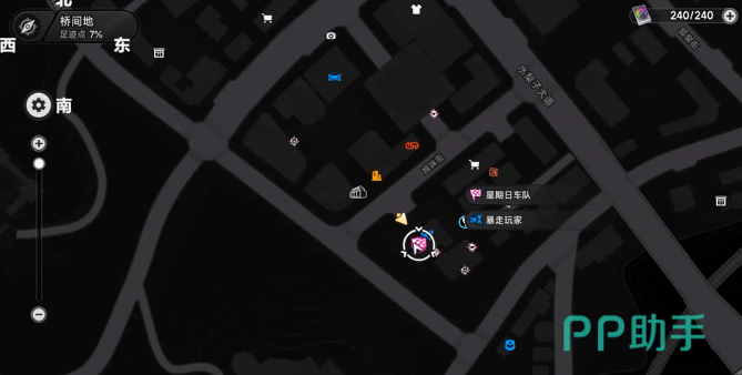 玩家可以先打开地图,然后来到星期日车行。从左下传送点来到路边,就可以看到前面东南方向的房子顶端有一个宝箱。慢慢的攀爬上去,走到对应的位置,马上就可以失去这个点位,还是比较显眼的,在靠近之后就能看到提示。这来到眼前这栋大楼的楼顶,保持平衡,稳步攀爬就可以看到第二个宝箱,位置就在楼顶边缘,注意千万不要踩空。再次打开地图,来到桥间地水离子大道的右侧。在前方房顶处就可以看到有一个宝箱。