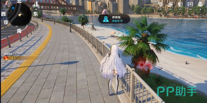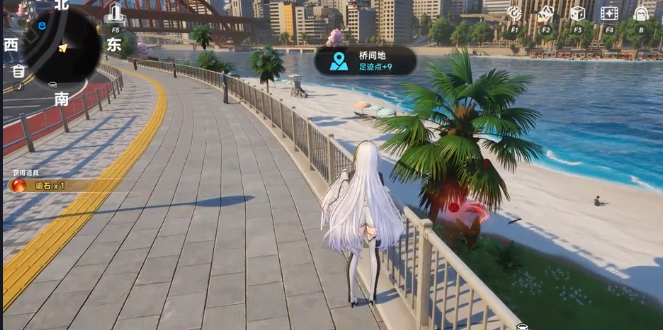 接着可以通过传送的方法来到钓鱼点,直接追踪导航过来,在钓鱼点的附近也会有一个宝石不需要攀爬。继续打开地图,来到指定的位置,在咖啡厅建筑顶端。攀爬到房顶后右转视觉,然后朝着南方向的篮球场飞去。篮球场的后面有一条小路,沿着一条小路走到尽头,马上就可以获得宝箱。接下来自然是环海公路的路边,在路边上就可以看到,不需要复杂的操作。在拿到之后继续向前飞,然后来到海边,在远处的遮阳伞中间就会有一个。