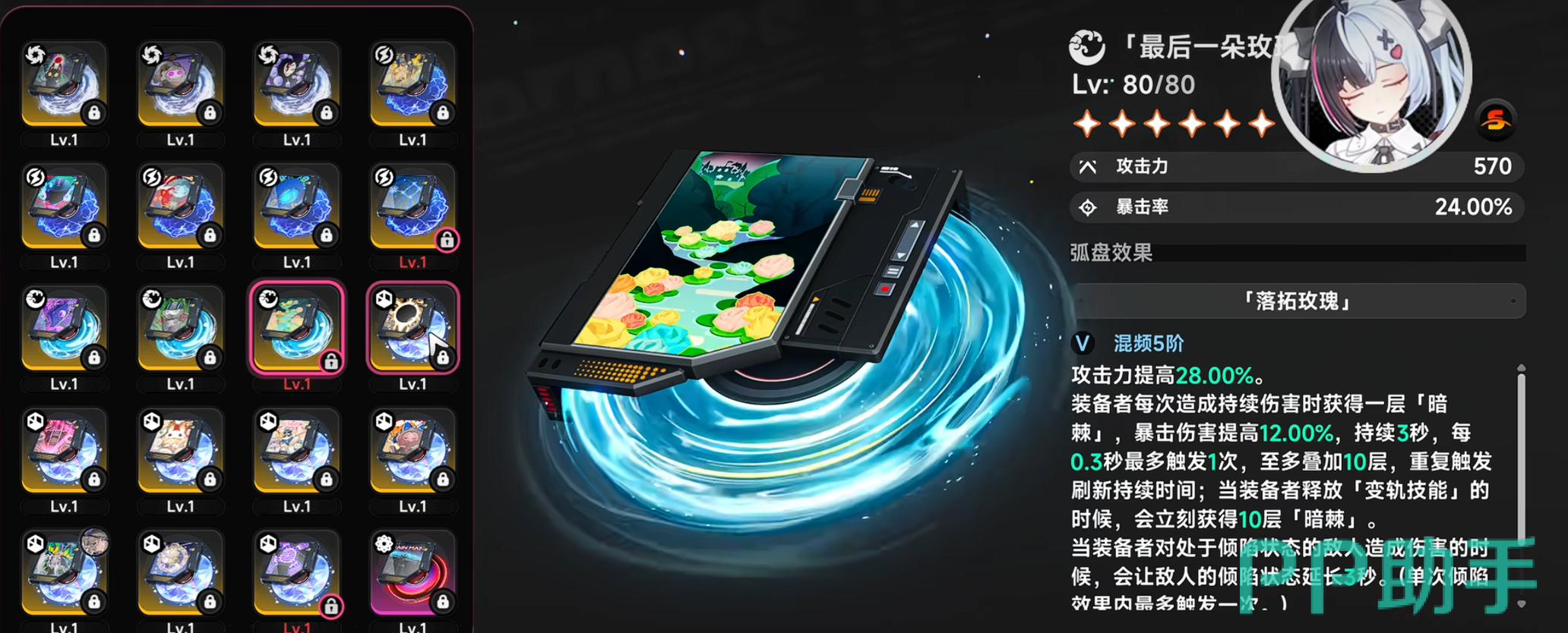 综上,“最后一朵玫瑰”弧盘并非泛用型装备,而是专精于暗属性输出场景的高精度增幅工具。其570攻击、24%暴击率的基础配置扎实,配合暗棘+倾泄双机制,在安魂曲身上可实现伤害最大化。玩家可根据自身队伍构成,在安魂曲UP池开放时酌情抽取,避免资源浪费。