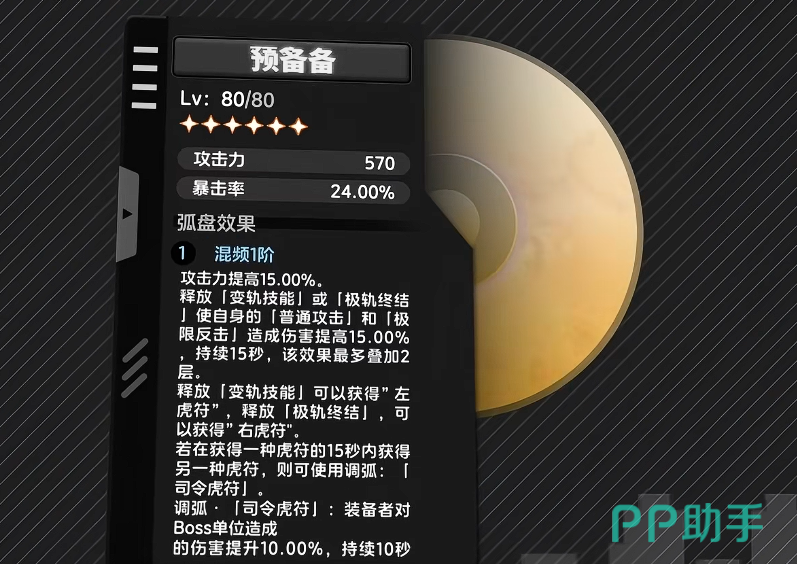 预备备的核心机制为被动增益:激活后可提升全队成员普通攻击伤害。这一效果在娜娜莉作为主C使用时尤为显著——其普攻倍率、连段衔接与大招循环均能稳定触发该加成,从而形成远超同阶弧盘的综合输出优势。此外,该弧盘对Boss目标还设有额外伤害加成,进一步放大其在高难副本与首领战中的实战价值。随着后续升阶,各项增益数值还将阶梯式提升,成长路径清晰且长期可用。