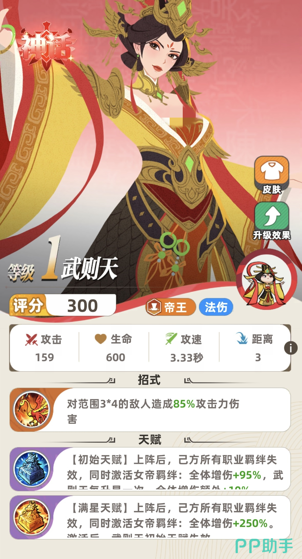 武则天定位为高爆发法系核心,其被动技能赋予全体友方95%基础伤害加成;当升至三星后,该增益提升至250%。但需特别注意:武则天上场时,所有职业羁绊效果将被强制关闭。这意味着常规羁绊流派无法与其共存,必须围绕其构建纯功能型阵容。当前最优解为“三法体系”——由张角(15级起手)、姜子牙(12级)、武则天(12级)组成。其中张角提供持续AOE电球输出,姜子牙通过提升全场我方英雄总星级数强化蓄力法术波伤害,武则天则承担终结收割与范围补伤职能。该体系资源消耗极大,属于高投入向玩法,普通玩家难以稳定成型。