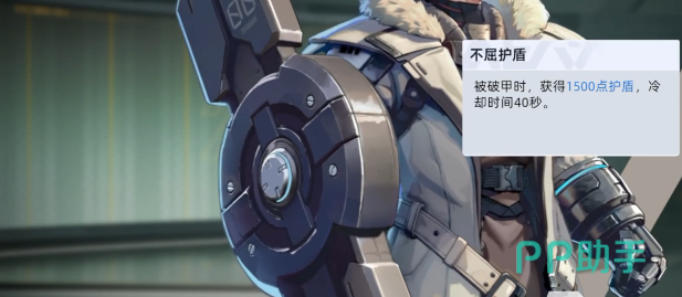 巴顿的核心生存机制来自被动【不屈护盾】:当自身护甲值被完全击穿时,立即生成1500点独立护盾,该效果拥有40秒冷却时间,不可连续触发。注意——此护盾不占用血量条,属于额外承伤层,常在残血反打或队友集火支援的关键帧中扭转战局。