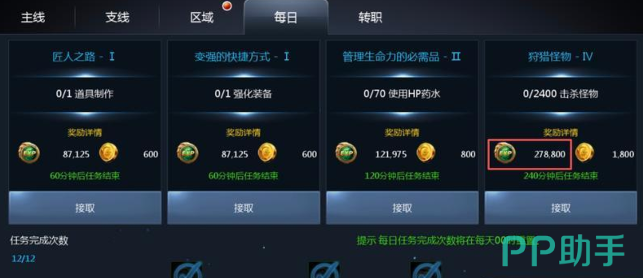 日常任务每日上限为12次,建议优先完成经验产出最高的任务类型;若遭遇战力不足导致失败,可直接消耗金币一键扫荡,避免无效耗时。切忌在低回报任务上反复尝试。区域任务是挂机练级的理想选择,每日完成10次后,再集中处理其他任务链。等级偏低时,推荐挑战3~5档难度的怪物,确保任务次数清空效率;当角色等级提升、资源积累趋于稳定后,可转向PVP战区承接种族任务,在击败敌对单位的同时获取高阶经验奖励。