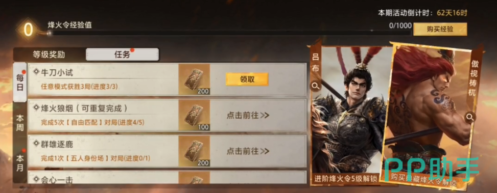 每日登录、完成匹配对战、赢得一局PVP胜利等基础行为,均可稳定获取烽火令。这类日常任务门槛低、执行快,是玩家前期积累战令资源最高效的方式。持续完成7日循环任务,还可额外激活连击奖励,显著提升烽火令总收益,为后续解锁高级战令等级奠定坚实基础。
