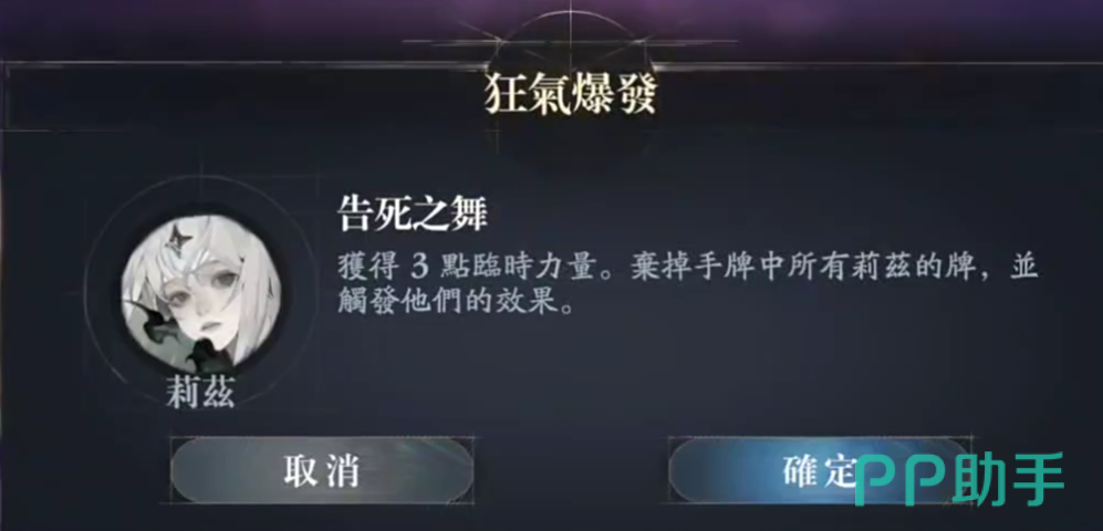 核心技能“告别之舞”可立即获得2点临时力量,并清空当前手牌中全部莉兹专属牌;触发后,“绿炎”随即对随机敌方单位造成6点基础伤害,并附加等同于本次伤害50%的中毒效果(即3点持续毒伤)。若该“绿炎”在回合结束时仍存在于手牌或超维空间,则自动升阶为“腐化绿炎”,保留至下一回合,且伤害次数由1次提升至2次。