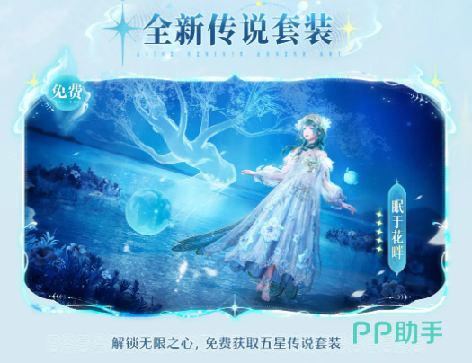 这次版本新增的传说套装叫「眠于花畔」,算是最值得关注的部分了。这套衣服完全不需要花钱,解锁无限之心,就可以直接获得,是五星传说套装。对比以往,要靠抽卡或者充值,才能拿到传说级套装来说,这次的安排算是挺大方的。