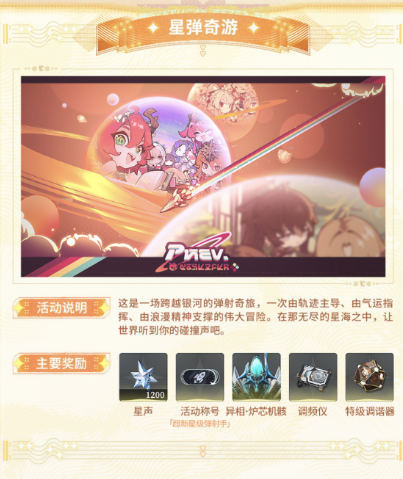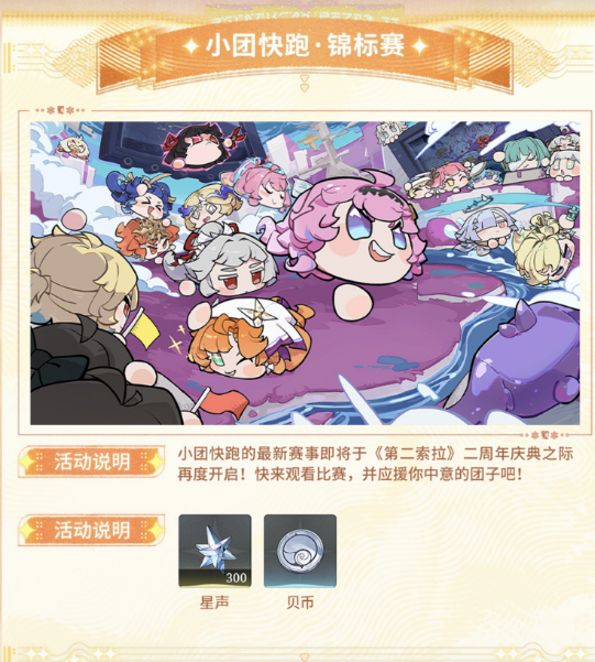 群星赠礼是个签到类型的活动,连续签到能领10连抽,这种白给的东西千万别忘了领。深坠异想奇境活动奖励是800星声,小团快跑锦标赛能拿300星声,虽然单个活动给的不算太多,但加起来也是笔不小的收入了。