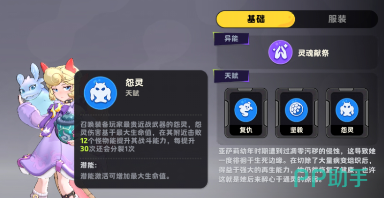 召唤流是亚萨莉的核心构筑方向。“怨灵”天赋可生成具备近战属性的召唤单位,其伤害基于亚萨莉最大生命值计算;每击杀12个敌人,亚萨莉自身战斗能力获得阶段性强化;当攻击次数累计达30次后,将分裂出新怨灵,进一步扩大输出覆盖面。配合近战武器装备加成,该体系能在中后期形成多层AOE压制网,实现高效控场与持续压制。