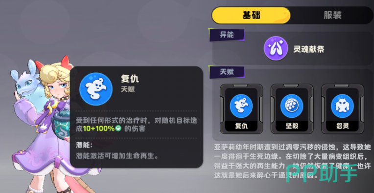 “复仇”天赋则提供反制维度:任何治疗行为均会转化为对随机敌人的等量属性伤害;潜能激活后追加生命再生效果,使该天赋兼具功能性与续航价值,适用于高压环境下的被动反击策略。