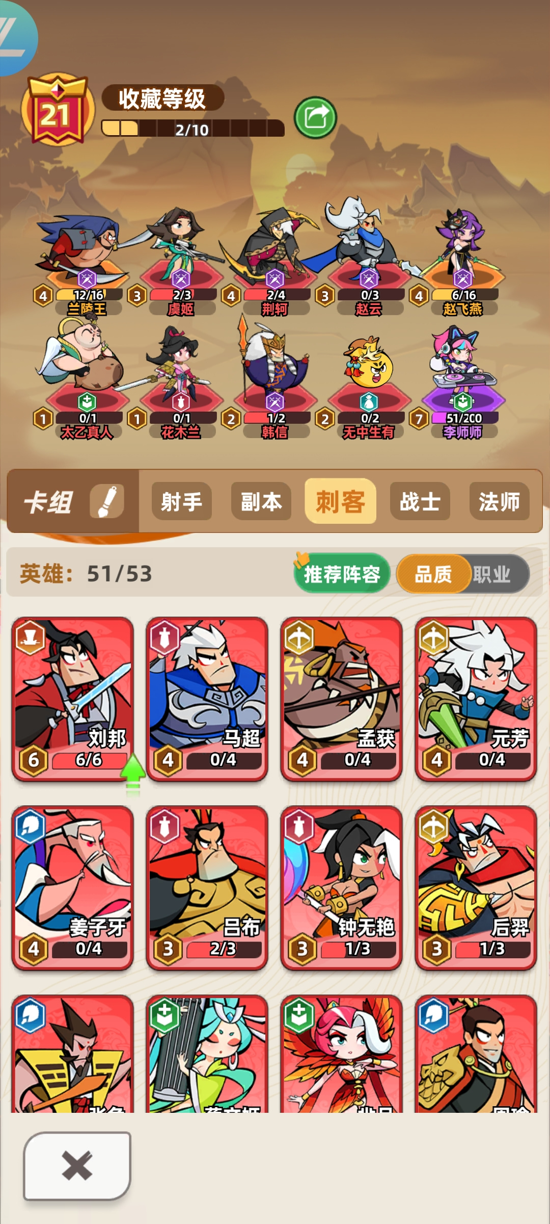 随着游戏关卡的推动来到第3章,决定生死胜负的重要角色,可更改为五星级的马超,游戏刚入局时需要刷新出这个角色,如果没有刷到可以重新的开局,前排可使用张飞和廉颇作为双坦来保护后面的英雄,免得马超核心角色被敌方的团伙消灭,第4章主要的英雄可转变为5星级的赵云,是属于刺客类型的角色,可以搭配兰陵王和虞姬,在前四关的时候,赵云可站立在边路叠加攻击的层数,从第5关开始,boss的攻击则转化为物理性的损伤,这时,可以将刘备撤下加入廉颇,并且把赵云移动到阵容的中央位置来避开边缘化的锁定。
