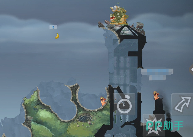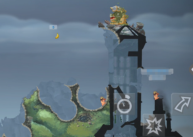 最后一个搭配就是大家用其中的香蕉炸弹来搭配这里的火箭炮,这样搭配起来的话,整体的武器训练效果当中,单兵输出的强度也会非常高,因为其中火箭炮具备的一个打击能力绝对是在很多地形当中都具有不错的输出功能的,而香蕉炸弹的话,在这里做一个子母雷加强版的输出武器,基础的伤害都有70点,它的威力其实跟之前介绍到过的神圣手雷是差不多的,但是它有一个非常好的效果,就是可以定时,所以大家如果想要继续连接更多攻击效果的话,那么在这里可以前期丢出去一个香蕉炸弹以后,设定好它爆炸的时间,然后此时再切换成火箭炮来输出,那么在火箭炮输出火力到达的时候,大家就可以引爆其中的香蕉炸弹,通过这样的方式,在其中可以带来的单次爆发输出效果会更好一些,而且其中要注意,因为橡胶炸弹的弹跳力是非常强的,所以在地形当中大家一定要注意不能弹入到水中,否则就是直接浪费了一个武器的效果。