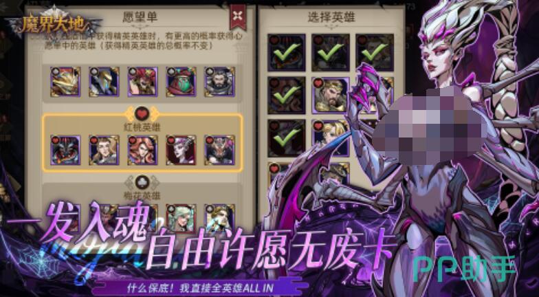 抽卡系统其实也是具备特色的,毕竟传统的卡牌类的游戏在抽卡的时候具备随机性,而该游戏却涉及到愿望单机制。玩家只需要把自己心仪的英雄加入到心愿单,抽到精英英雄的时候,心愿单英雄的概率将会提升。不过在这种情况下,总概率却没有缩水,所以说玩家这时候根本就不需要担心阵容问题,毕竟玩家可以借助抽卡来打造理想的阵容。