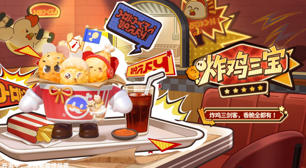 炸鸡三宝是这次的核心角色组合,由芥末凶、翅中宝、琵琶腿三块炸鸡组成。三个性格完全不一样的角色凑在一起,反而配合得出奇地好。芥末凶看起来凶,说话却带着大碴子味,一开口就让人忍不住笑。翅中宝头顶葱花,是队里的小弟,但做起事来一点都不含糊,大家都挺放心交给它的。琵琶腿戴着耳机,平时一副不在乎的样子,重要时刻却总能想出最靠谱的方案。三个人加在一起,刚好把力气、人缘、脑子都补齐了。