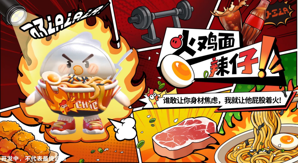 火鸡面辣仔的风格,和前两个完全不同。它眉头紧皱,眼神坚定,就算在冰箱里,也保持着满格的热血状态。泡面盒上画满了辣椒和火焰,但整体看起来,并不让人觉得有压力,反而有种越看越带劲的感觉。辣仔代表的就是那种不服输的劲头,不管遇到什么情况,都要继续往前冲。