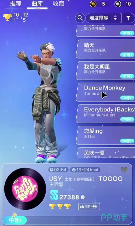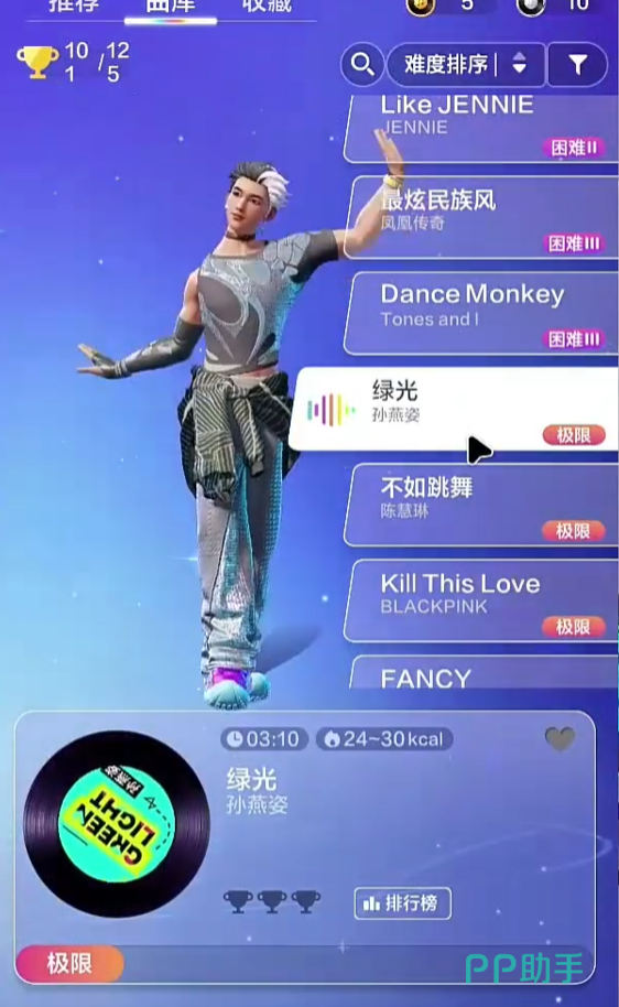 舞力全开:派对这款游戏用细致的10级难度区分,给不同水平的玩家提供一条清晰的成长之路。从简单的入门跟跳、困难模式的快速反应、极限模式的零失误挑战,每一级的上升都是对舞蹈技巧的一次实质性的飞跃。建议玩家不要急功近利,而应该稳扎稳打,按照自己的情况来选择歌曲的难度。玩家只有在适合自己难度的练习中不断磨练,才能真正体会到舞蹈的乐趣,在舞池里发光发热。