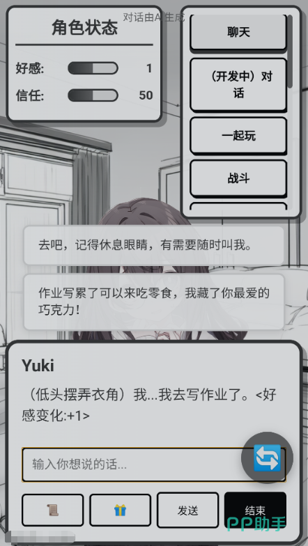 而当目前好感度正好停留在70,且信任度是0的情况下,大家就会解锁Yuki最后一个性格,叫做病娇妹妹,那么在这个分支里面,大家需要注意,她此时对大家的信任度是达到0的情况下,分支里面各种剧情就没有办法通过常规的互动来触发,必须满足一些特定的条件才能达成,而且此时Yuki的性格也会变得比较怪异,跟玩家之间的交互也会出现一些特别的聊天对话,那么在角色情绪当中变化的次数也会比较快的变化,在表达自己喜好的时候,病娇妹妹这个状态给大家的反应变化是最多的,因为她会时常不断的改变自己的喜好,而在Yuki的各种性格出现之后,大家就要注意在其中如何通过各种剧情分支来确定其中的好感度,这里通过日常陪伴以及互动,还有日记解析都可以了解到如何提升Yuki的好感度哦,每天共进早餐,并且在特殊的节日里面给Yuki更多的关怀行为,在这里好感度提升的数值还是比较多的。