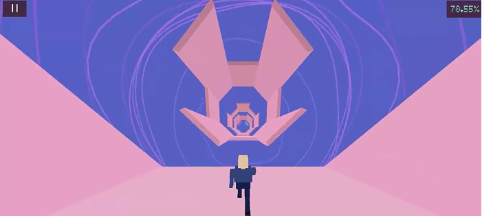 游戏的关卡主要是以旋转隧道作为场景,全程高速前进,难度还会逐步的升级。核心的目标就是跑的越远,分数也就越高。障碍全部都是几何形状,有方块墙,有尖刺,还有断裂平台。初期的障碍比较少,速度很慢,后期的障碍密集。隧道旋转速度加快,还会出现连续断层,容错几率还是比较低。分数按照奔跑的距离计算收,收集能量块就可以额外的加分。连续躲避障碍物还可以直接触发倍数加成,挑战高分数,那就需要少失误,多收集。