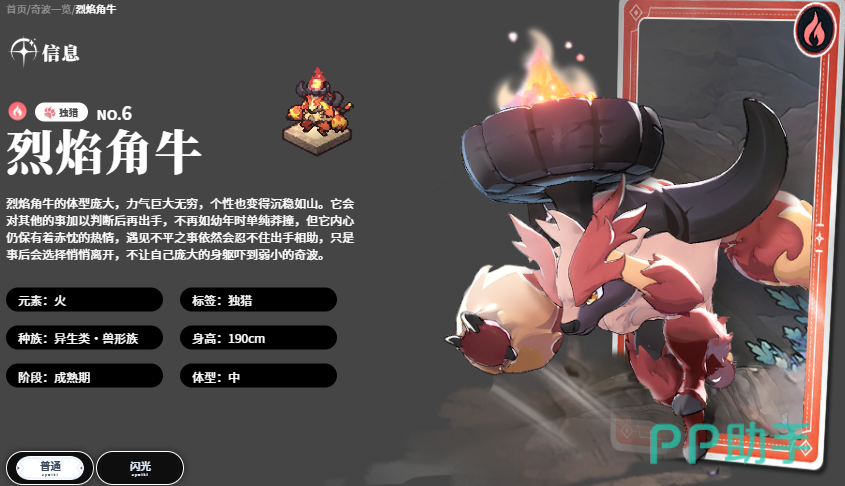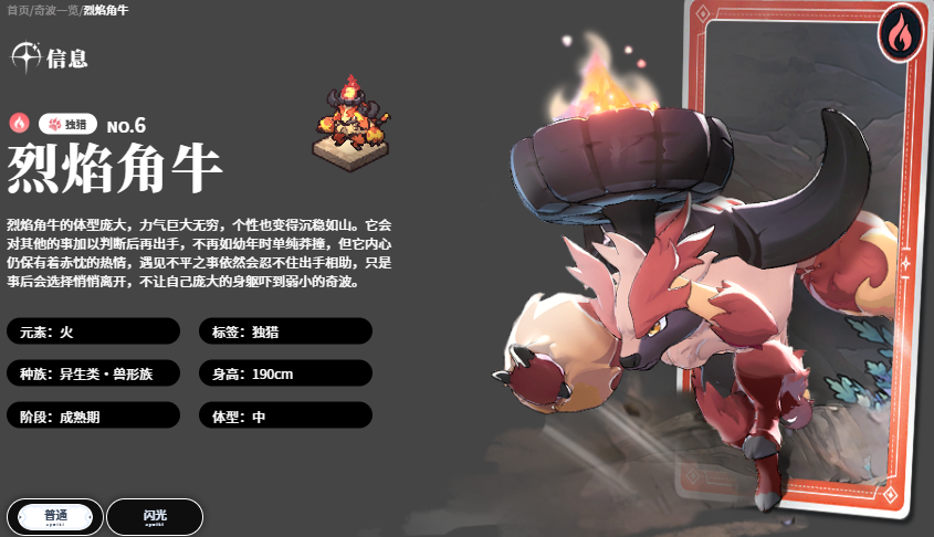 位列T0级火系奇波代表的是烈焰角牛。其核心优势在于高密度范围压制与火队增益一体化:主动技能可触发矩形区域内的6段连续打击,兼具可观的覆盖率与节奏控制能力;在队伍配置层面,不仅能提升我方角色的攻击力、暴击率与暴击伤害,更可在命中后为敌方施加火元素抗性削弱效果,显著放大火属性队伍的整体输出效率。此外,烈焰角牛自带短距瞬移机制,可快速贴近目标展开近身压制,极大增强操作响应与战场机动性。