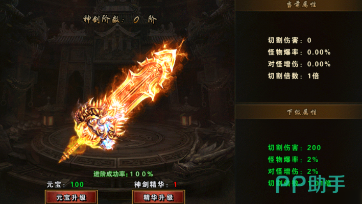 开局阶段,神器系统是优先级最高的养成模块之一。该系统支持双轨升级路径:其一为元宝直充强化,其二为副本产出“神剑精华”兑换进阶。随着神器阶级提升,角色将同步获得三项实质性增益——切割伤害数值增长、怪物掉落率百分比提升、以及受击减伤效果增强。需注意的是,进阶成功率随阶级升高而递减,且每次失败后下一次成功概率固定提升5%。因此建议新手在资源储备不足时,优先通过日常任务与限时活动积累元宝;若选择精华路线,则需重点刷取指定副本以保障稳定产出。
