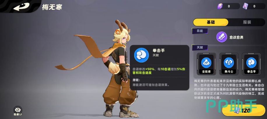 终极天赋“拳击手”聚焦控制与滚雪球机制:激活后,每次成功击退敌人可叠加5%伤害加成,最高叠加至50%;同时提升击退触发概率,并在潜能生效时进一步强化近战打击反馈。该天赋需在前两个天赋解锁并培养至一定阶段后方可开启,是梅无寒中后期成型的核心驱动力,也是当前版本中单局内成长上限最高的天赋配置。