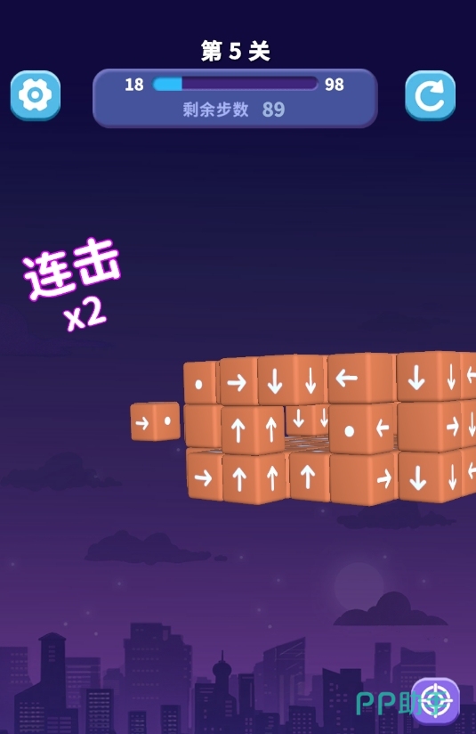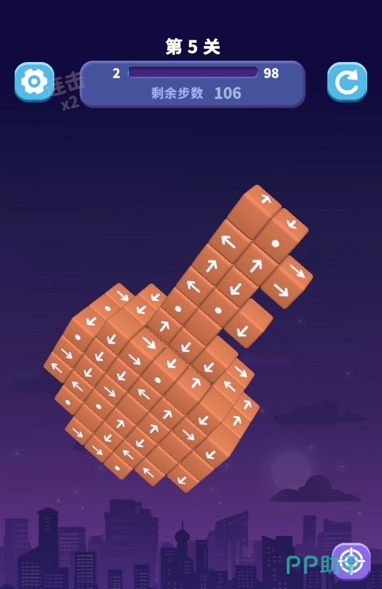 需特别注意的是,若某方块箭头所指方向存在其他方块阻挡,则点击无效,该方块将保持原位不动。此时必须优先清除其前方障碍,才能激活其消除条件。此外,每关设有严格步数上限,超步即失败,需重新挑战。这种“低操作门槛、高策略容错率”的设定,让新手能快速上手,同时为进阶玩家提供了充分的推演深度。