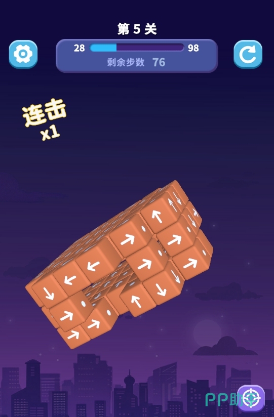 本作的核心机制围绕三维立体结构展开:每个关卡均由多个带方向箭头的正方体堆叠构成,箭头指向即为该方块唯一可移动的方向。玩家通过点击目标方块,使其沿箭头方向直线飞出并脱离模型——前提是其行进路径上无任何遮挡物。当全部方块被成功移除,即视为通关成功。